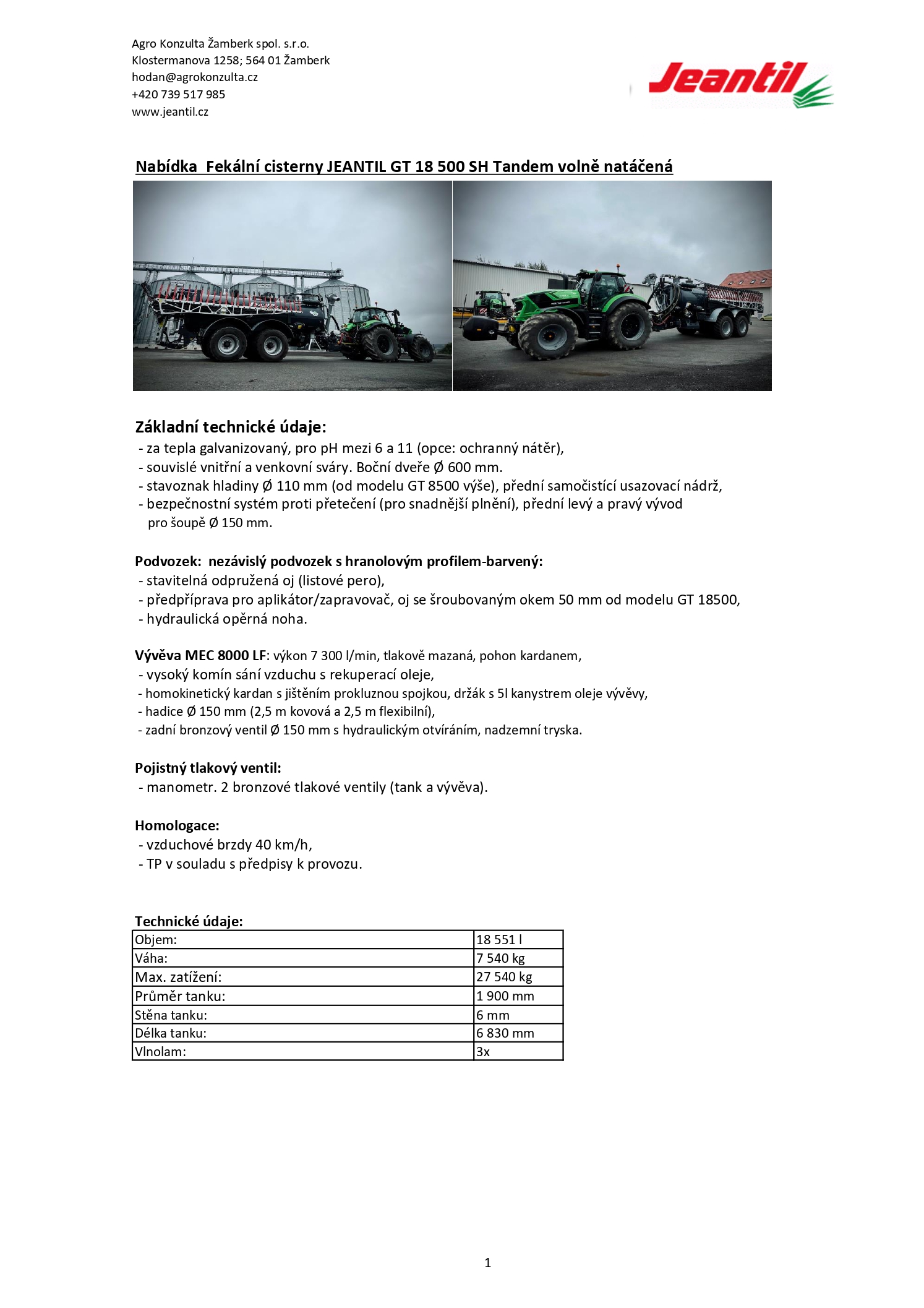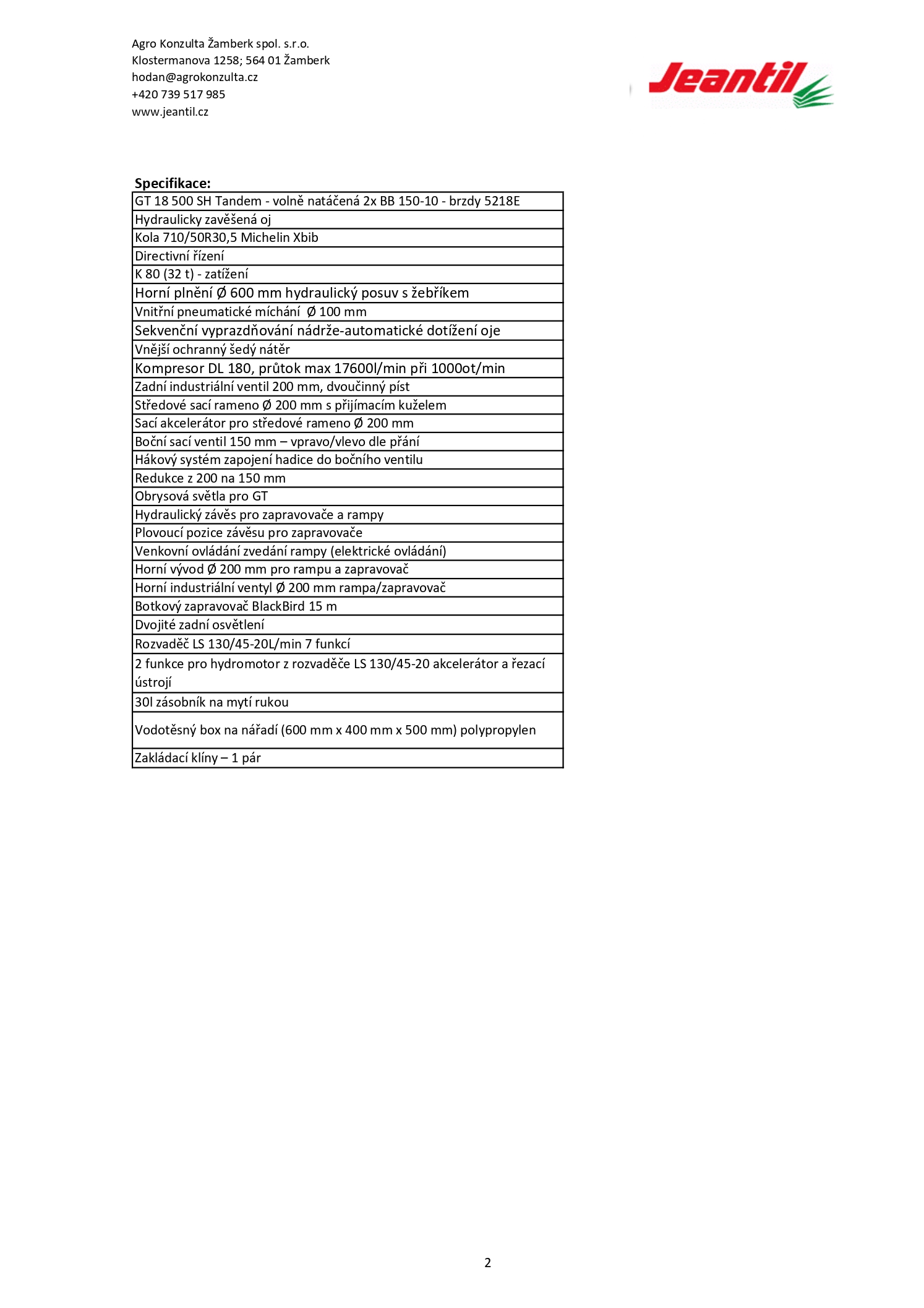 Společnost AgroKonzulta Žamberk spol. s r.o. má ve svém prodejním sortimentu novou cisternu Jeantil GT 18500 s botkovým zapravovačem BlackBird 15 m.